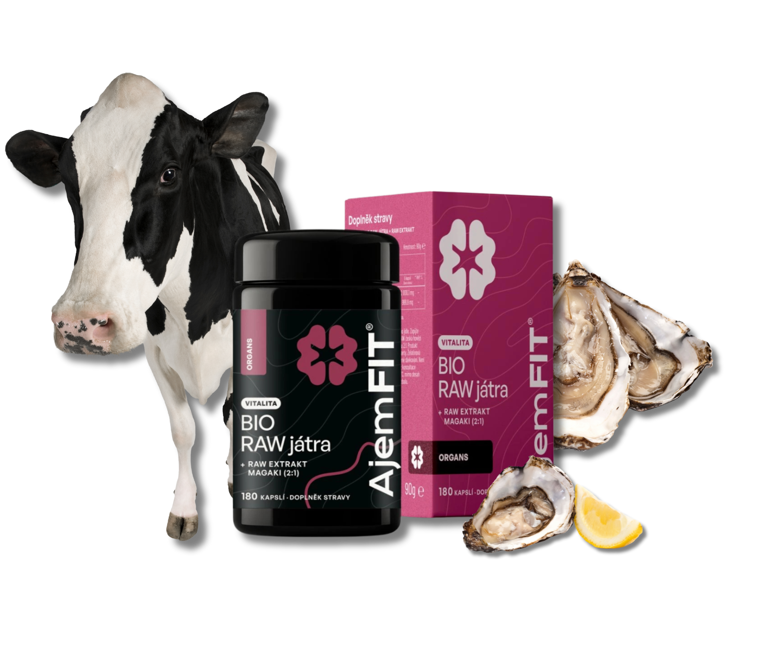 BIO RAW VITALITA od AjemFiT je funkční doplněk stravy kombinující mrazem sušená BIO hovězí játra z českých horských oblastí a extrakt z japonských ústřic Magaki pěstovaných v chráněných vodách prefektury Hirošima. Tato přírodní kombinace poskytuje komplexní spektrum esenciálních mikronutrientů – včetně biologicky aktivních forem vitamínů A, B12, D, K2, hemového železa, zinku, mědi, selenu, taurinu a cholinu – ve vysoce vstřebatelné formě bez jakýchkoliv aditiv. Uchováno ve fialovém skle Miron Glass, které chrání bioaktivitu a stabilitu účinných látek každé dávky.