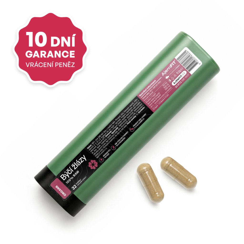 Za naší kvalitou si stojíme. A proto pro Vás máme tuto testovací "lékovku" RAW býčích žláz. 32 kapslí na otestování. Pokud Vám produkt nebude do 10 dní od jeho doručení vyhovovat, VRÁTÍME VÁM PENÍZE! Pro plný efekt ovšem doporučujeme rovnou šáhnout po plnohodnotném balení Býčích žláz.