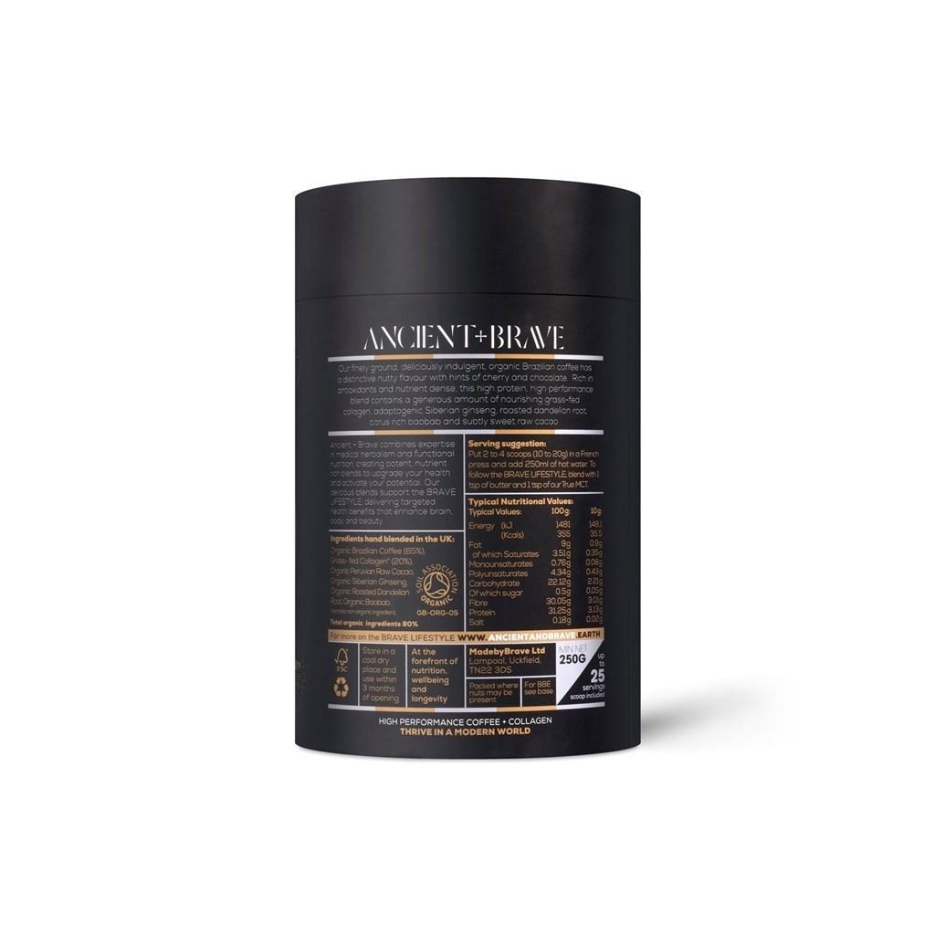 Ranní šálek kávy je oblíbeným rituálem každého z nás – efektivně povzbuzuje mysl i tělo. Když k tomu přidáme ještě další složky, které dovedou posílit organismus a poskytnout mu palivo, získáme komplexní nápoj, který tělo vitalizuje, zároveň jej však nevysává. Dohromady tyto složky dávají plnohodnotný nápoj vhodný pro začátek dne jako náhrada stravy v rámci metody přerušovaného půstu (Metoda Brave), nebo jednoduše před zahájením fyzické aktivity pro optimální stimulaci.