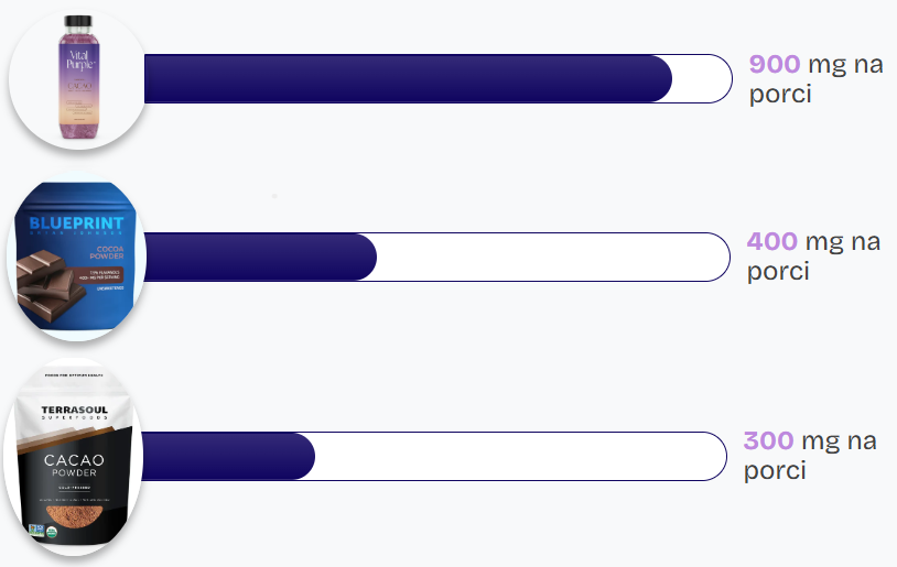 Málokdo si uvědomuje, jak bohatým zdrojem živin a zejm. minerálů pravé kakao je (viz níže). Je však potřeba myslet i na obsah antinutrientů a to zejm. oxalátů v pravém kakau, proto nedoporučuji více než 50g prášku za den pro sportovce a 25g pro nesportovce. Pokud přesto plánujete vyšší dávkování kakaa za den pak doporučuji přijímat současně také zdroj kvalitního vápníku a vitamínů D3+K2 jako prevenci tvorby vedlejších produktů oxalátu.