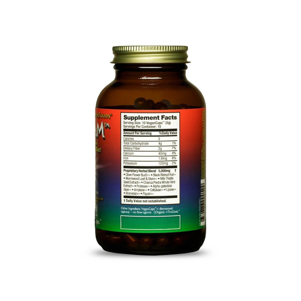 Proprietární bylinná směs 5000mg*: hřebíček květ ∞, černý ořech slupka ∞, pelyněk pravý list a nať ∞, výtažek ze semen ostropestřce mariánského ∞, výtažek z rostliny chanca piedra ∞, směs enzymů (proteáza ∞, alfa-galaktosidáza ∞, amyláza ∞, celuláza ∞, lipáza ∞, bromelain ∞, papain ∞), veganská kapsle - pullulan z fermentované tapioky™ ∞ (bez činidel).