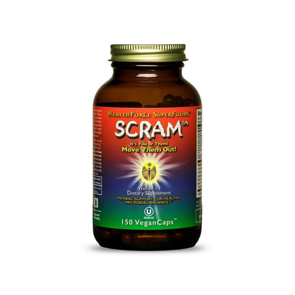 SCRAM™ je speciálně vytvořená bylinná a 100% přírodní formule navržená k boji proti parazitům v organismu. Parazité mohou výrazně oslabit zdraví tím, že spotřebovávají živiny hostitele a produkují toxický odpad. Tento produkt pomáhá eliminovat parazity i jejich zárodky, podporuje očistu organismu, zdravá játra a optimální mikrobiální rovnováhu.