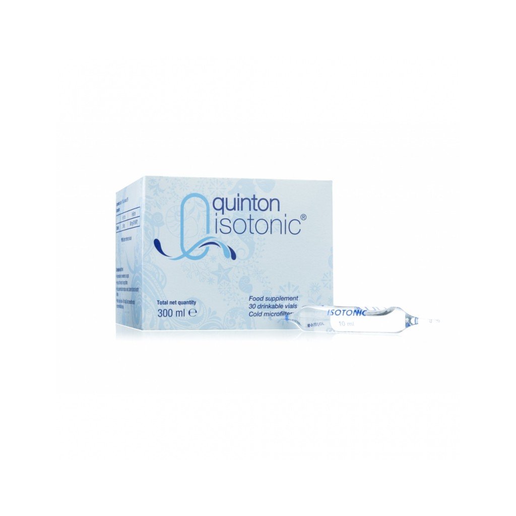 Složení: Přírodní čerstvá mořská voda z planktonových oblastí zpracovaná studenou mikrofiltrací dle originálního postupu René Quintona, koncentrace snížena na roztok izotonický (9 ‰) s pramenitou vodou s nízkým obsahem minerálních látek pro zachování správného poměru – bakteriologicky čistá, přirozeně sterilní (26.22 <26,5 Ro Ohms/cm2/cm 45000.). Není tepelně ani chemicky upravována, ani ozařována UV filtrem.