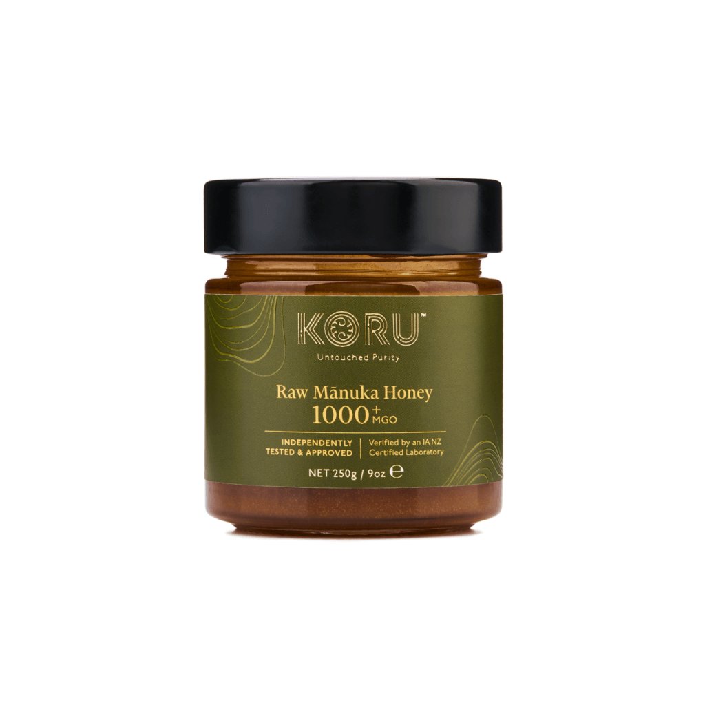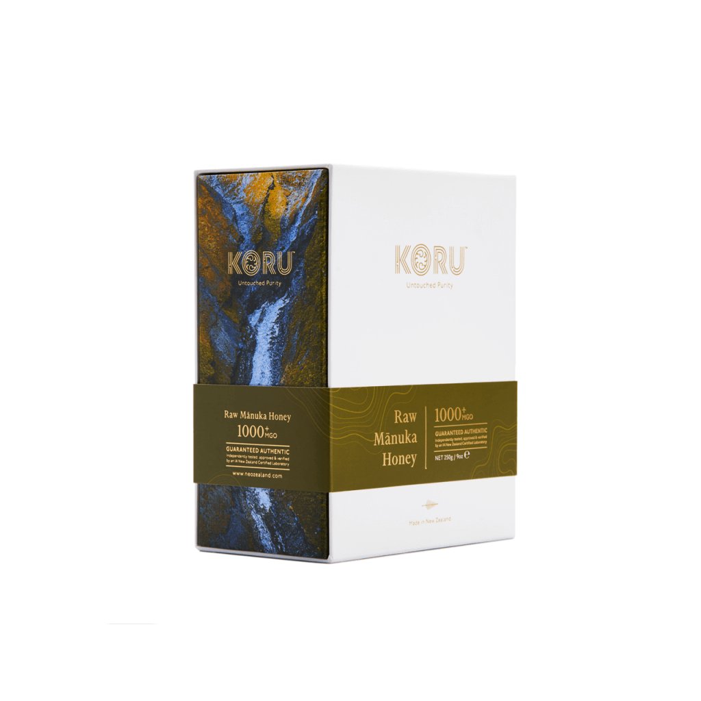 KORU Raw Manuka 1000+ MGO již překračuje běžné "topové hodnoty 800+" těch nejvíce prémiových Manukových medů na trhu. S jemnými náznaky likéru a lehkou dochutí lézraho ovoce je tento vzácný jednokvětý med ctěn po celém světě pro své širokospektrální jedinečné vlastnosti. Je certifikováno, že obsahuje nejméně 1 000 mg methylglyoxalu na kg.