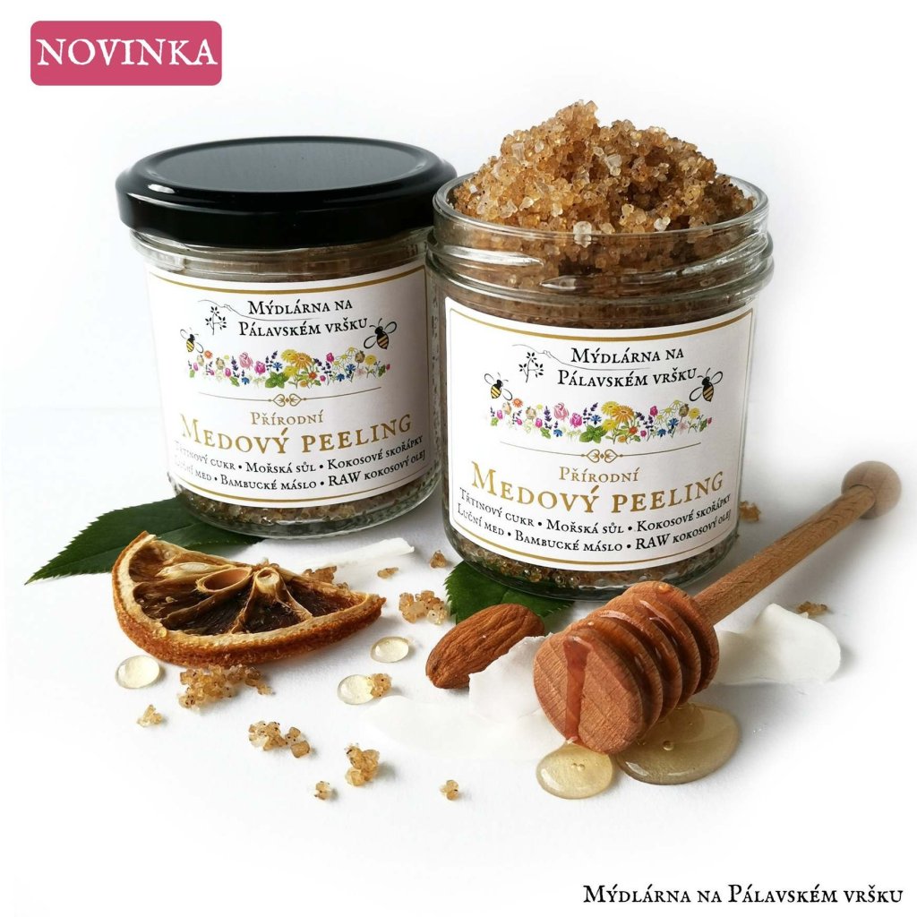Medový peeling díky třtinovému cukru, nadrceným kokosovým skořápkám a mořské soli krásně odstraní zbytky odumřelé kůže, pokožku hezky prokrví a vyhladí. Med, Raw kokosový olej a bambucké máslo v tomto peelingu pomáhají ošetřené pokožce navrátit vitalitu, jemnost a potřebnou výživu. Po použití medového peelingu bude vaše pleť hebká, lehce voňavá po pomeranči, svěží a zdravě prokrvená.