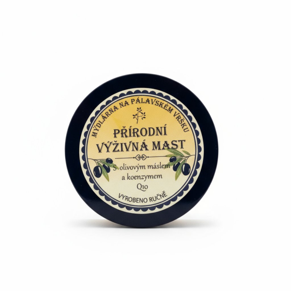 Přírodní výživná mast s olivovým máslem a koenzymem Q 10 je vyrobená z kvalitních přírodních surovin, vhodná k péči nejen o suchou a popraskanou pokožku, ale i ostatní typy pleti. Pomáhá k rychlejšímu hojení a udržuje ji příjemně vláčnou a v dobré kondici. Díky přídavku výživných olejů a českého včelího vosku bude vaše pokožka krásně napnutá a vyživována.