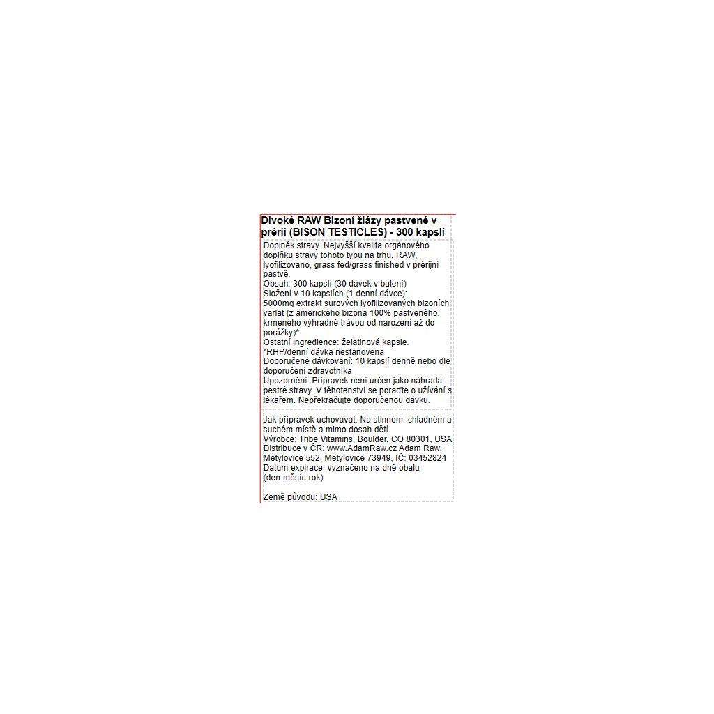 - Masivních 5000mg mrazem sušených bizoních žláz na denní dávku (10 kapslí)